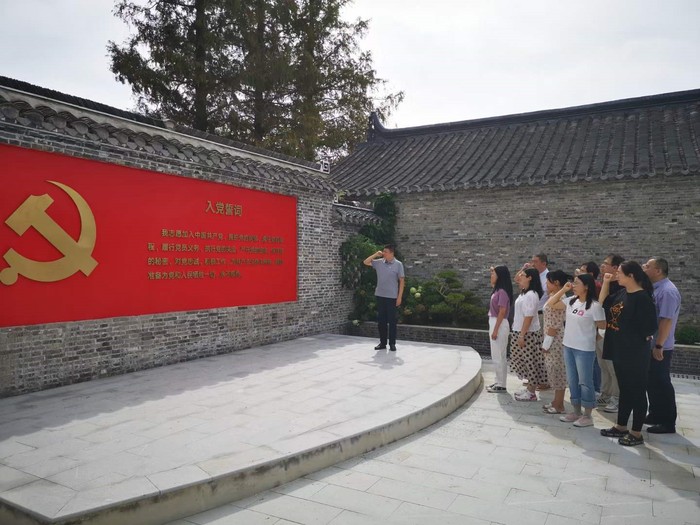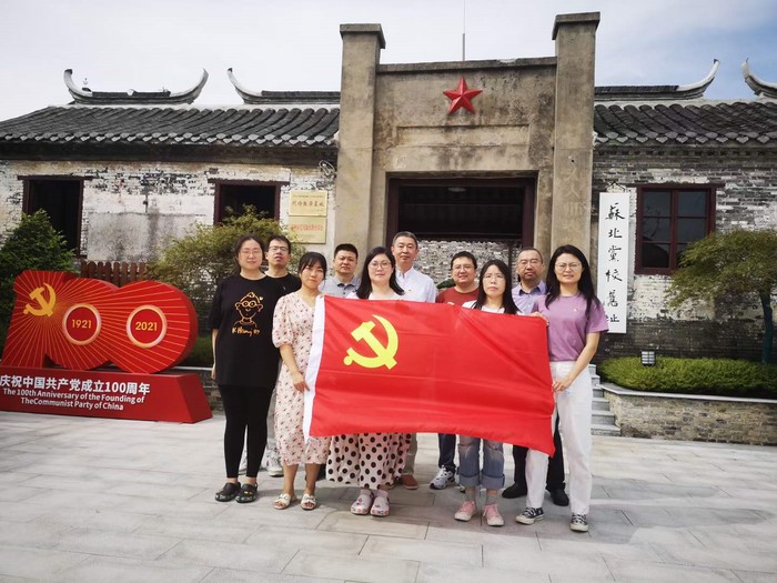 2021年9月25日上午九点,药学院全体党员教师赴泰州市海陵区苏陈镇苏北党校旧址开展“寻根之旅”革命传统教育实践活动。