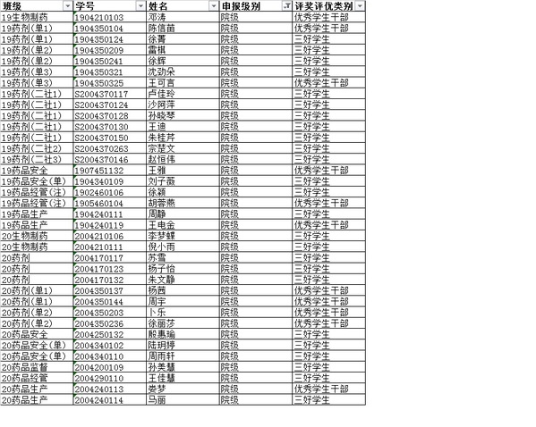 根据《20-21-1学年三好学生、优秀学生干部评选的通知》的有关要求及《泰州职业技术学院院、分院两级“三好学生”、“优秀学生干部”评选和奖励办法》的规定,经个人申请、班级初审、分院审核,拟推荐邓涛、雷棋等36名同学为院级三好学生和院级优秀学生干部,详情查看附件。