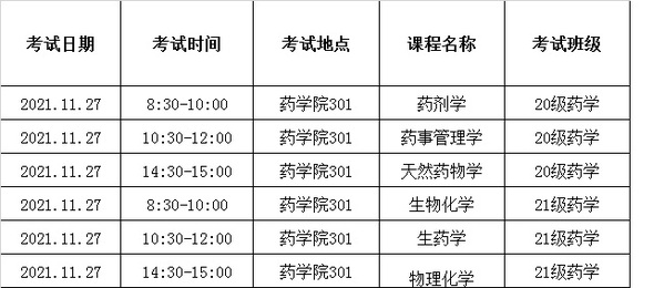 江苏大学泰州职业技术学院教学点药学专业的21-22-1学期期末考试将于2021.11.27在药学院举行,具体考试安排见附表。请20药学、21药学的同学准时参加考试,本次考试不设补考,如未通过,将转入下一年重修,影响毕业时间。
