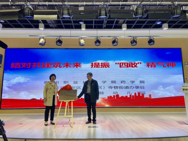 随后,还举行了“结对共建筑未来 提振四敢精气神” 共建活动揭牌仪式和“丹心闪‘药’ 厚生佑民 ”学生资助诚信教育主题活动暨防范诈骗座谈会。张秋兰和陈玉共同为“丹心闪‘药’ 厚生佑民”志愿服务实践基地揭牌。寺巷街道干部职工代表、寺巷幼儿园教师代表、药学院师生代表就学生资助诚信教育和防范诈骗等进行了深入座谈交流。