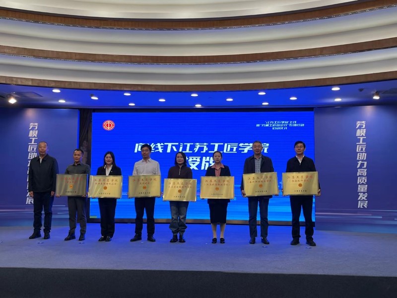 2023年11月10日上午,由江苏省总工会组织的“江苏工匠学院”暨“劳模工匠助企行”专项行动在南京启动。会上,我校成功获批江苏工匠学院,药学院院长王立中应邀参加授牌仪式。