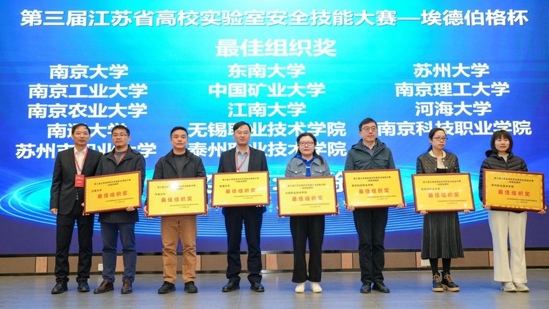 3月17日,第三届江苏省高校实验室安全技能大赛(埃德伯格杯)在南京工业大学举行。大赛吸引了省内67所高校参赛,我校由教务处殷荣平、智药学院刘晓敏、燕韦婷老师3名老师组成的参赛团队经过认真的准备和激烈的角逐荣获一等奖,我校荣获最佳组织奖。