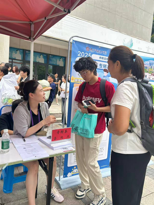 志愿者们在特色展示台为新生及家长送去驱蚊香囊及罗汉果咖啡解暑。在升学就业咨询台,专业老师采用政策解读+案例分享模式为新生及家长详细介绍转本政策及分院好润集团订单班就业政策,为新生及家长解答升学与就业方面的困惑,助力学生做好职业发展规划。