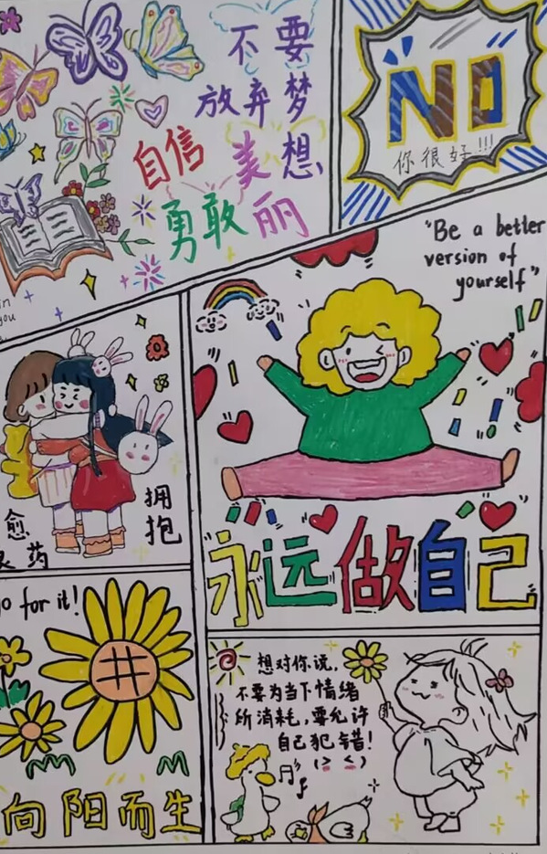 活动现场,同学们用简洁的线条和充满故事性的画面,将日常生活中的微小感动、人与人之间的善意联结、面对困境时的乐观坚韧,转化为一幅幅生动而治愈的漫画作品。这些作品如同具象化的“心灵创可贴”,以艺术的方式轻轻抚平焦虑,传递希望与力量,生动诠释了“艺术疗愈”的独特魅力。