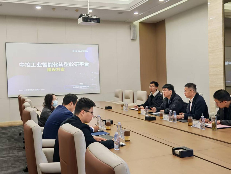 吕林校长一行首先参观了中控技术展厅,详细了解了中控技术在工业自动化、数字化转型以及智能制造领域的最新研究成功和工业应用。通过实地考察,考察团直观感受了化工自动化从传统控制到数字孪生、智慧工厂的跨越式发展过程。在随后举行的座谈会上,校企双方就教师工业自动化素养提升培训达成高度共识。双方初步确定于2026年暑期,分两批选派智药学院20名骨干教师赴浙大中控开展“化工自动化基本素质培训”。在首期培训结束后,将根据考核反馈和实际效果,量身定制后续的“技能进阶培训”方案,实现教师从理论储备到实战能力的闭环提升。